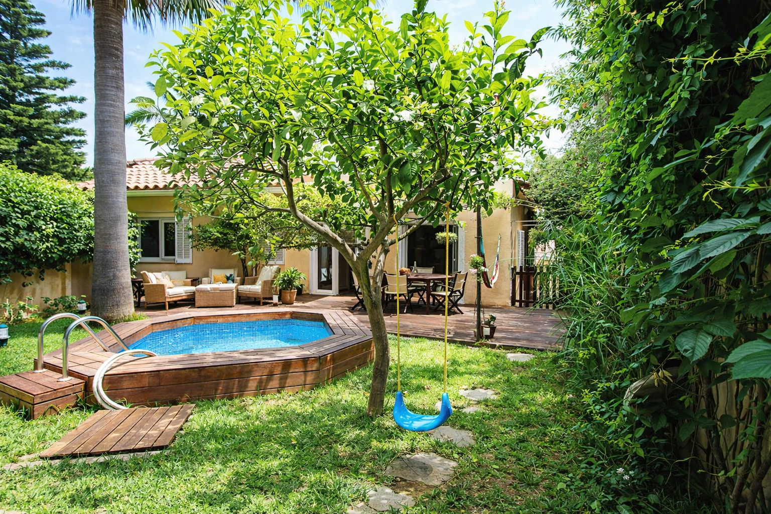 Es bestehen mehrere Ausbaumöglichkeiten, z.B. könnte eine komplette Etage aufgestockt werden oder aber ein Gästehaus separat gebaut werden. Ebenfalls möglich wäre ein Swimmingpool.