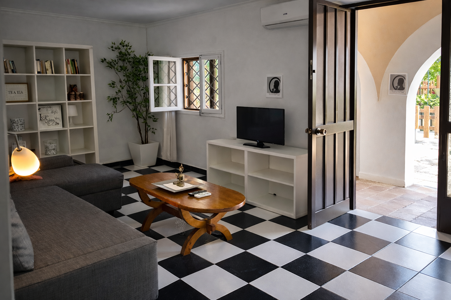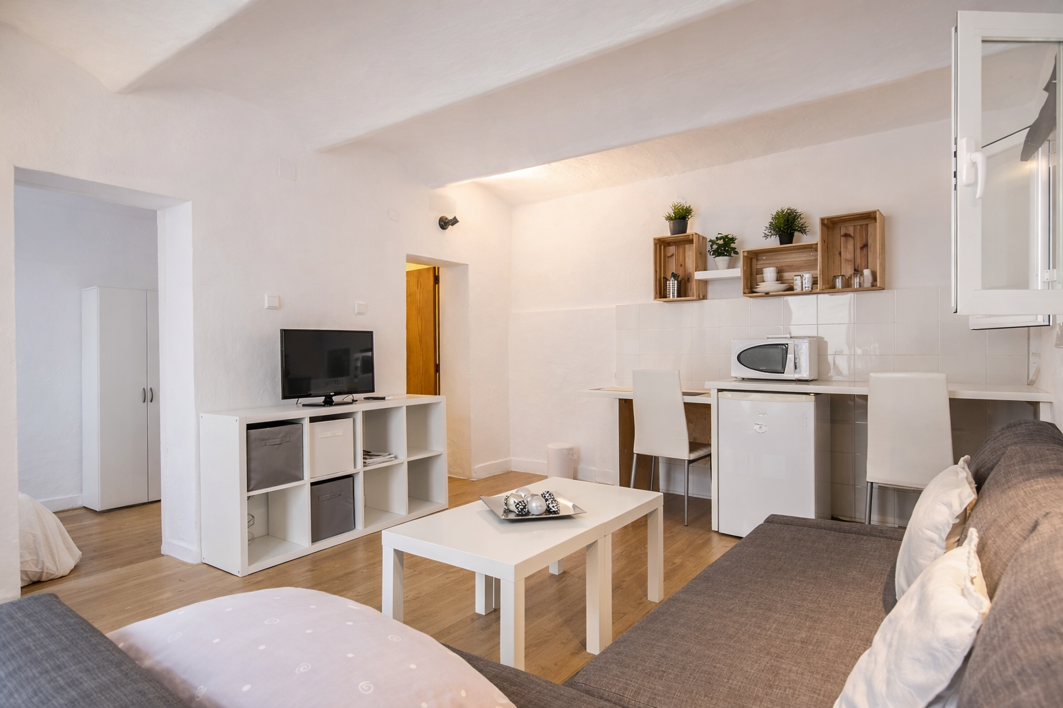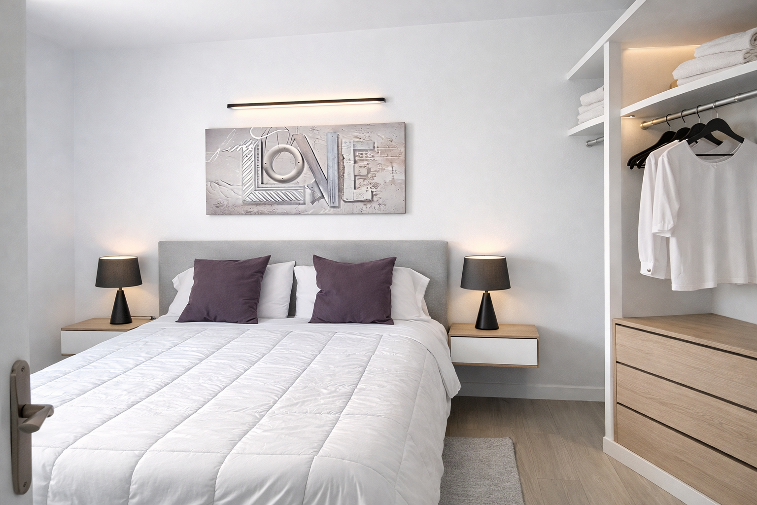 Apartment 2 hat 45m2 und verfügt über ein Doppelschlafzimmer mit eigenem Duschbad und ein Wohnzimmer, in der eine amerikanische Küche installiert werden kann.