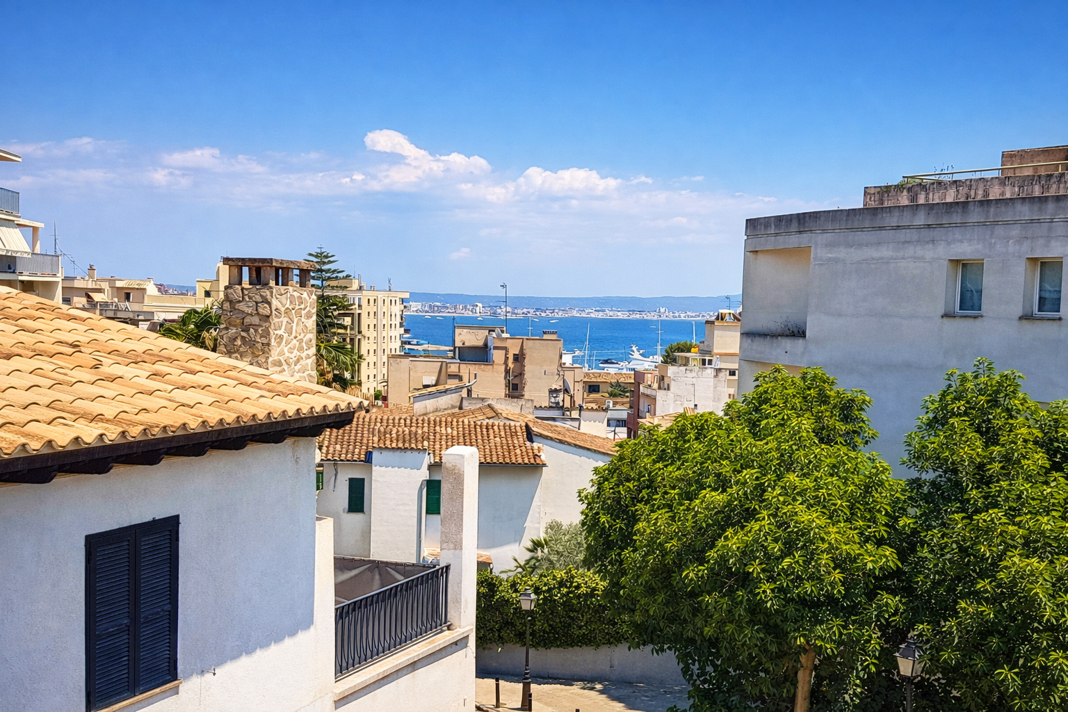 Die Dachterrasse bietet einen traumhaften Panoramablick, teilweise auf das Meer und den Hafen (103m2) .