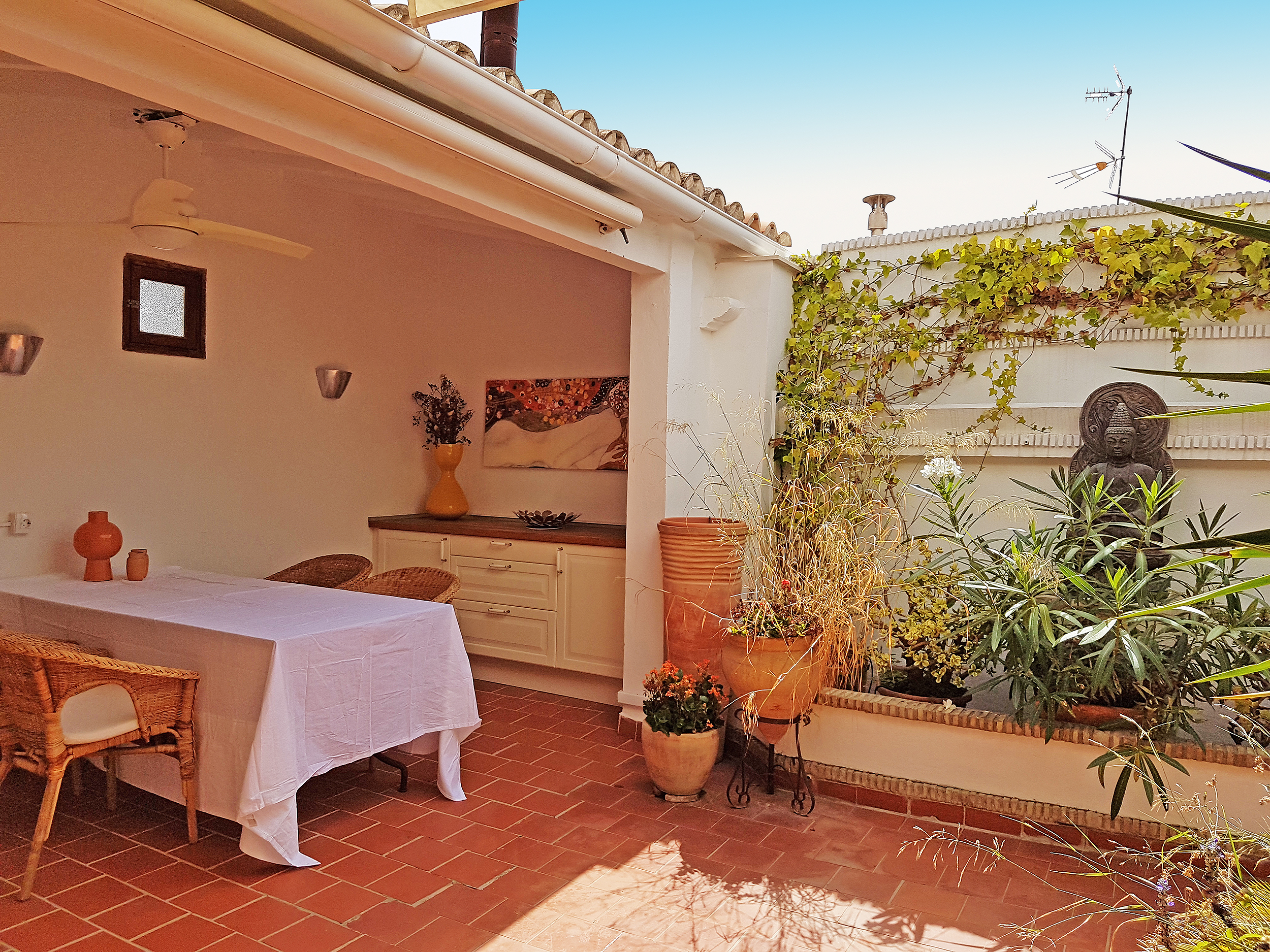 Das Juwel ist die uneinsehbare 47 m2-Patio mit überdachter Sommerküche und überdachter Lounge-Ecke, einem offenen Teil zum Sonnen sowie 2 Abstellräume (Waschküche).