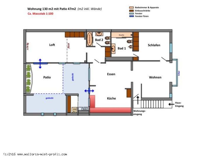 reine Wohnfläche: 130 (plus 47m2 Patio)