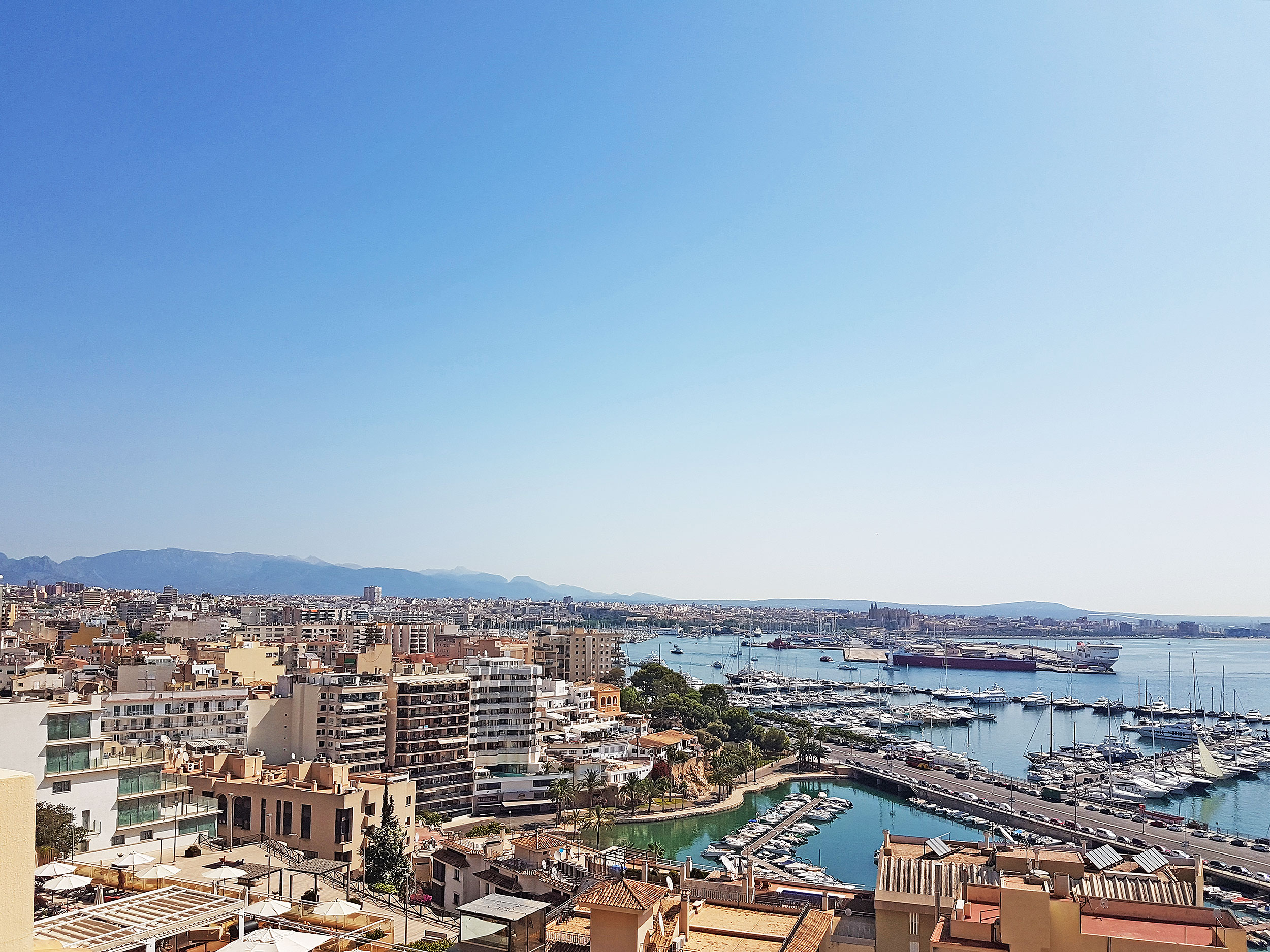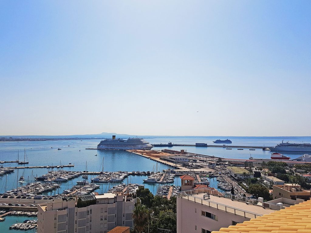 Von der Terrasse auf der Wohnebene des Penthouses bereits hat man einen Panoramablick über die Bucht von Palma inklusive der Kathedrale und den Hafen mit den ein-und auslaufenden Kreuzfahrtschiffen. Einkaufsmöglichkeiten wie z.B. das Porto Pi sind nur einen Katzensprung entfernt und sogar fußläufig erreichbar.