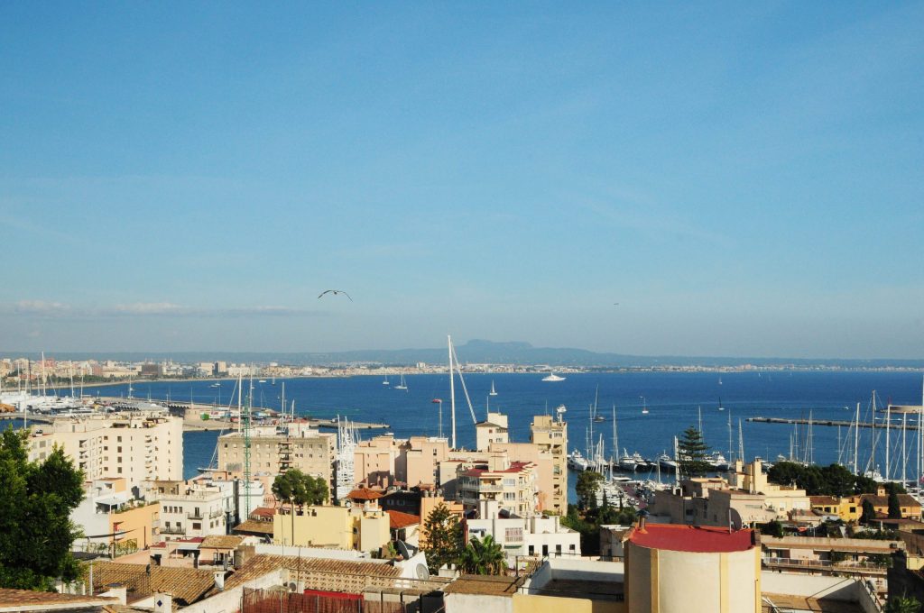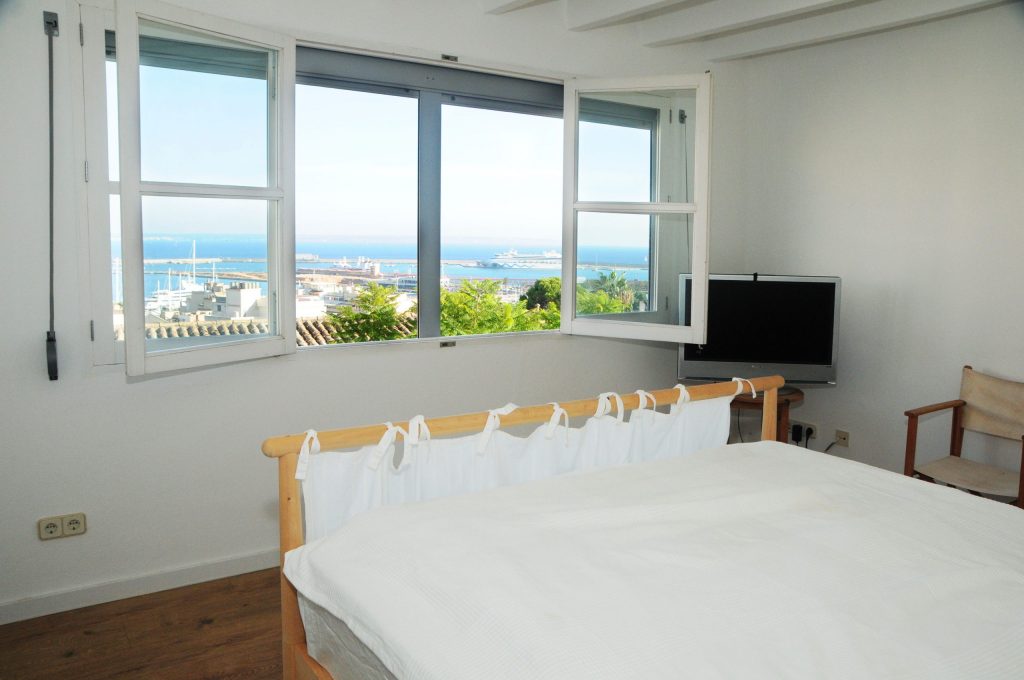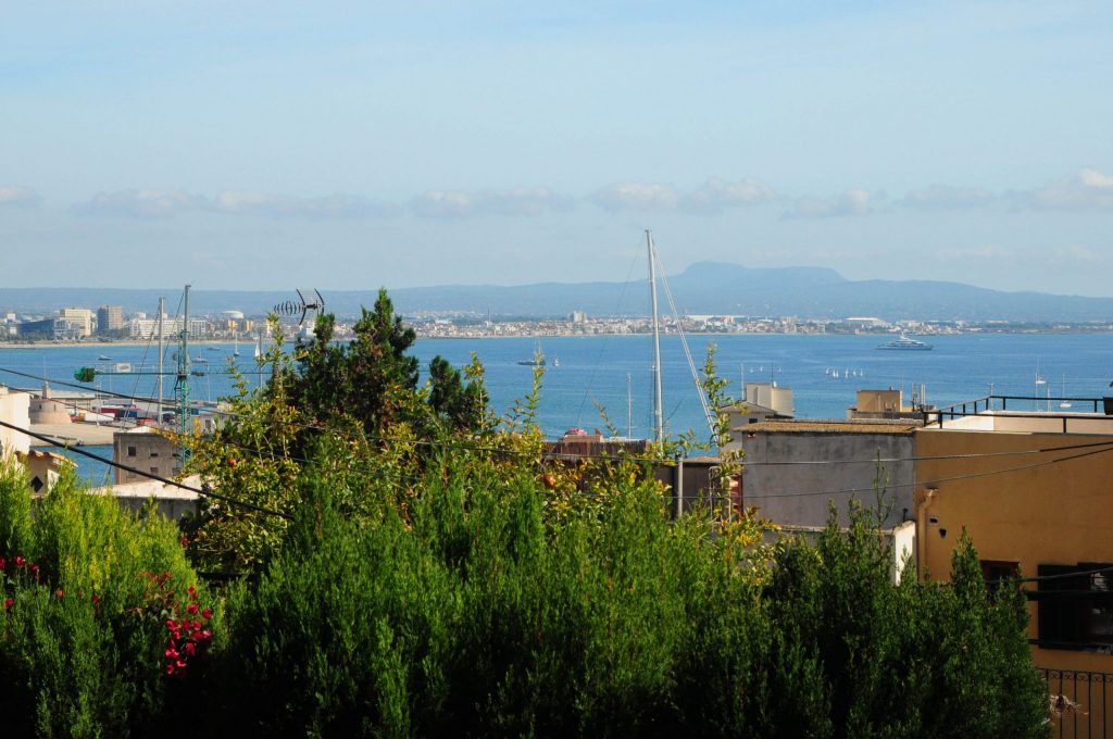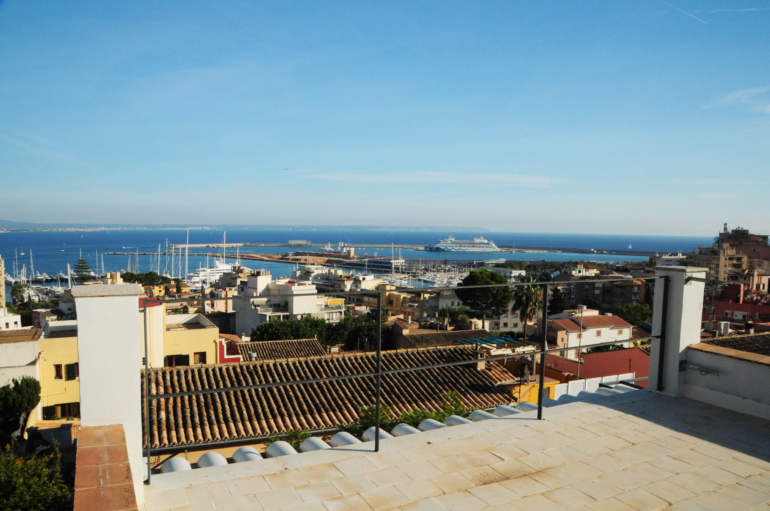 Ein Juwel in Bestlage: Diese herrliche, nach Süden und Westen ausgerichtete Villa thront auf einem aussergewöhnlich grossen Grundstück und bietet einen atemberaubenden Panoramablick über die gesamte Bucht von Palma, den belebten Hafen und das weite, offene Meer.