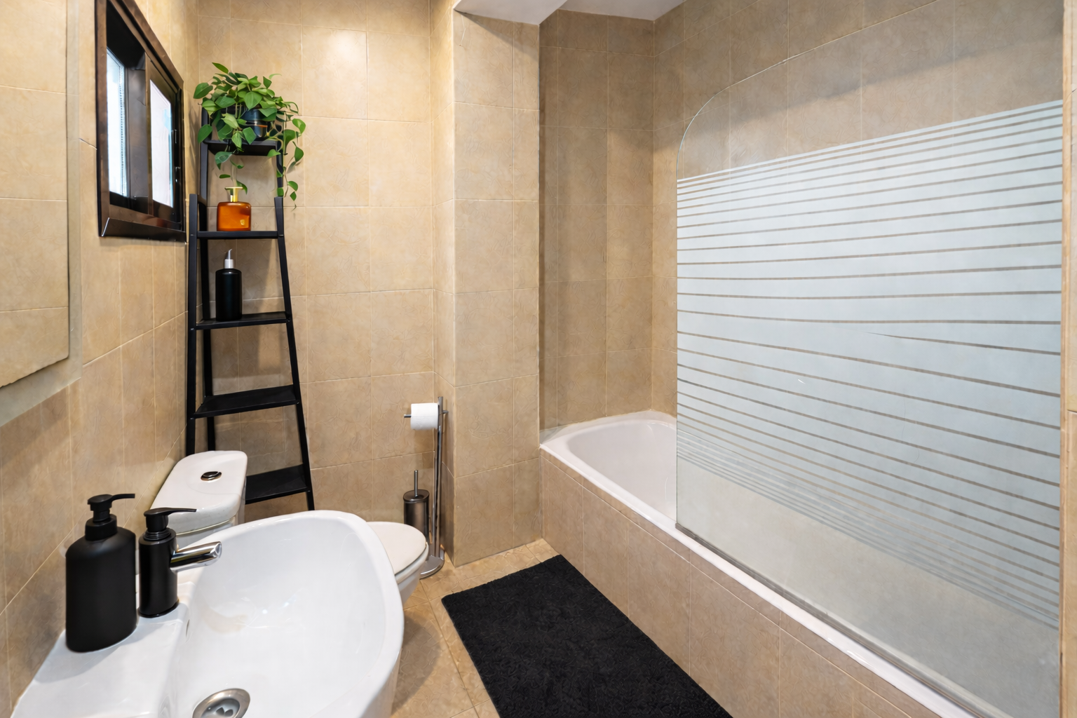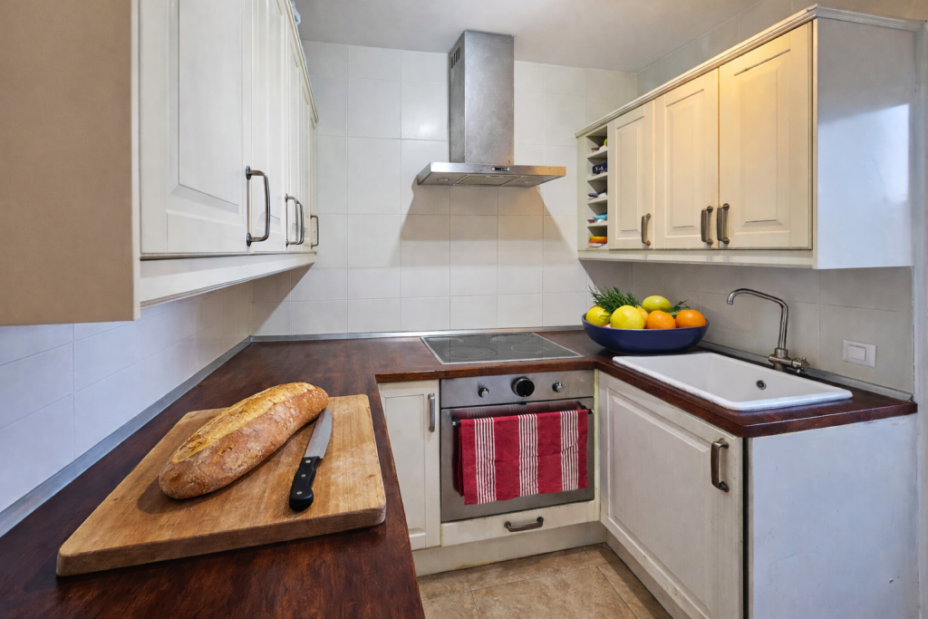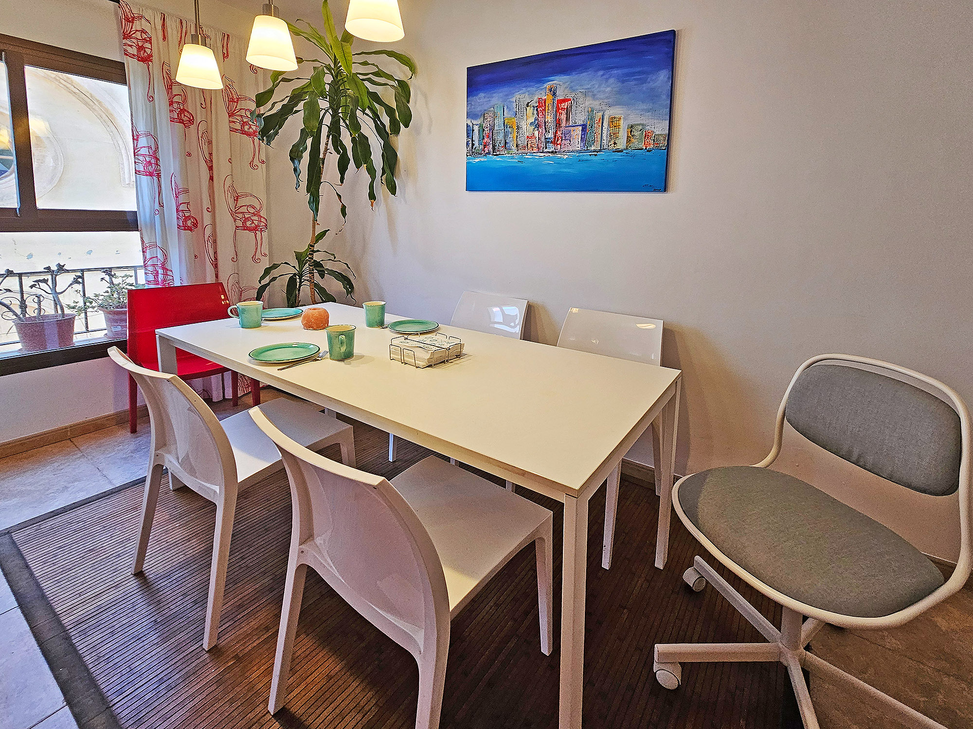 Helle und gepflegte Wohnung mit großzügigem Wohn- und Essbereich. Die separate Küche ist vollständig möbliert und mit Elektrogeräten ausgestattet und bietet Zugang zu einem Innenhof. Die Wohnung verfügt über zwei geräumige Doppelschlafzimmer, beide mit Zugang zu einem Balkon, sowie über ein komplett ausgestattetes Badezimmer mit Badewanne. Zusätzlich gibt es einen weiteren Raum, der bereits für den Einbau eines Gäste-WCs vorbereitet ist und derzeit als Abstellraum genutzt wird.