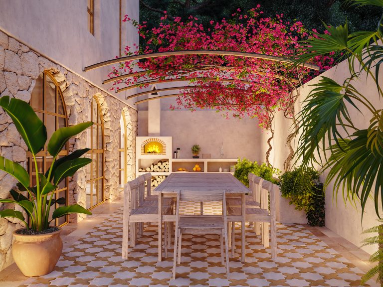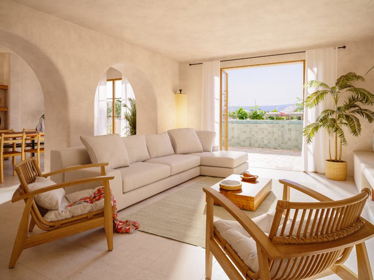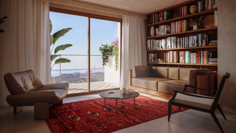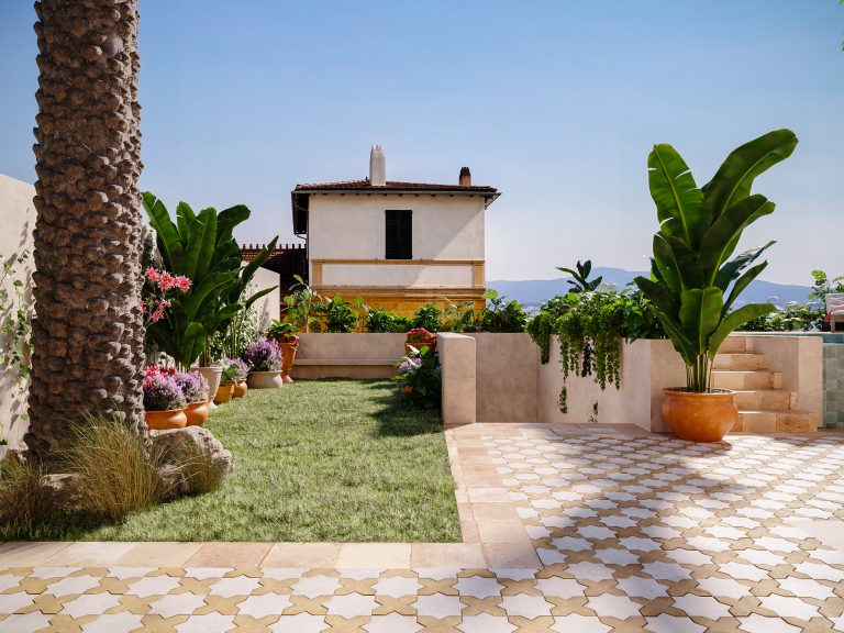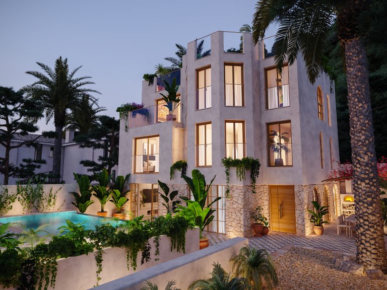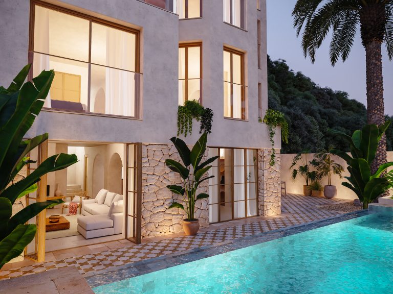 Die Marrakesh-inspirierte Villa befindet sich in der besten Straße von El Terreno, dem aufstrebendem Künstler-Viertel mit Blick auf das Meer, den Hafen und den Schlosspark. Die erhöhte Lage grenzt direkt an den ikonischen Bellver-Schlosspark und bietet Ruhe sowie grüne Umgebung, während das Zentrum von Palma nur wenige Minuten zu Fuss entfernt ist.