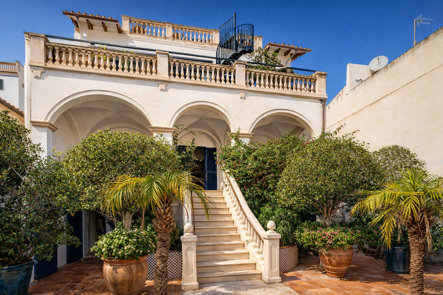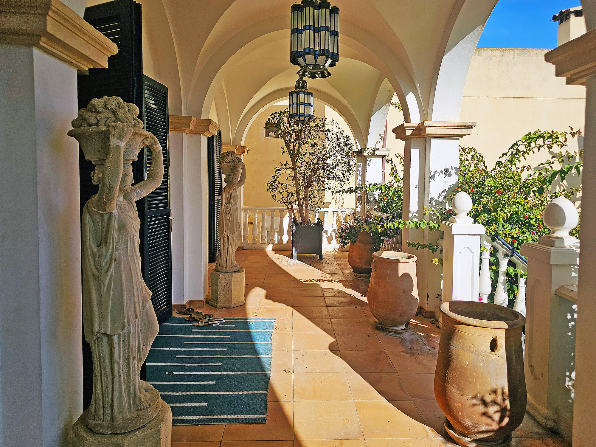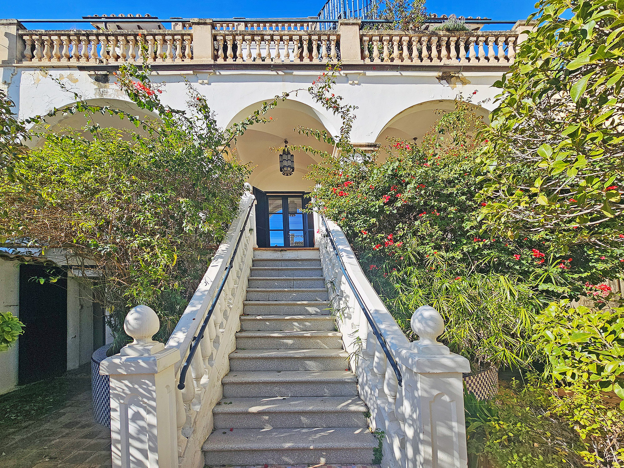 Lage: Die südausgerichtete Villa liegt oberhalb des Yachthafens von Palma, am Hang des Schlossberges des Castell Bellver im angesagten Künstler-Villen-Viertel „El Terreno“, fern des Trubels der Metropole, aber doch nahe genug, um alle interessanten Plätze sehr schnell zu erreichen. Ob Flughafen, Supermarkt, Golfplätze, Yachthafen, Cafés oder alle Arten von Restaurants, die Shoppingmeile, das Nachtleben oder der Strand, nichts ist weiter als 10 Minuten entfernt. Der traumhafte Panorama-Blick auf das Meer von der oberen Etage und auf die Berge von den unteren Etagen ist beeindruckend.