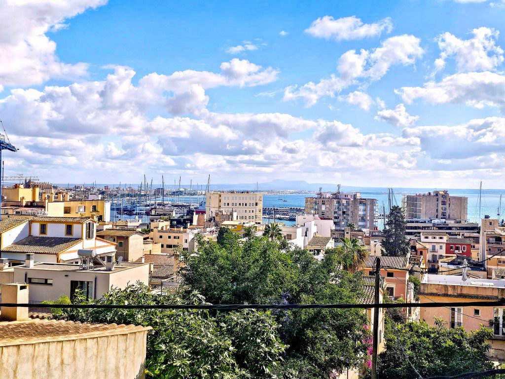 - TERRASSE 1 (Postkarten-Aussicht): Vom Wohnzimmer aus zugänglich. Lassen Sie sich von dem Panoramablick auf den Hafen von Palma, die Kathedrale und die Bucht faszinieren. Die perfekte Kulisse für Abendessen im Freien und unvergessliche Momente.