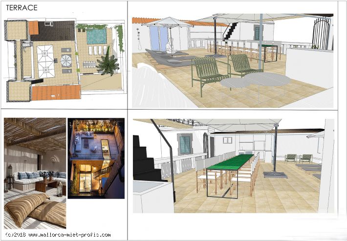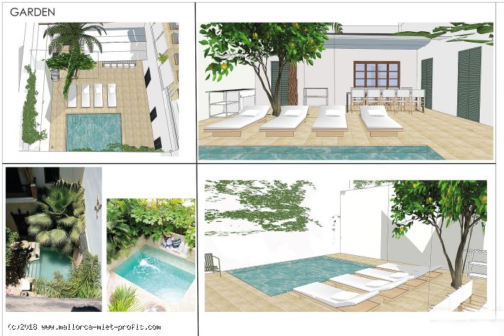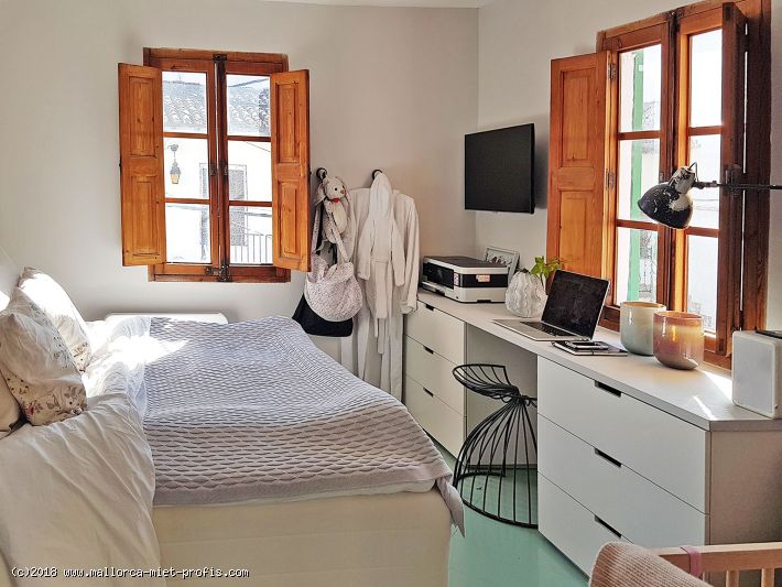 Detta charmiga hus med garage och trädgård ligger i den vackra lugna delen av Palmas bohemiska distrikt El Terreno, mycket nära Bellver Park med sitt gigantiska slott.