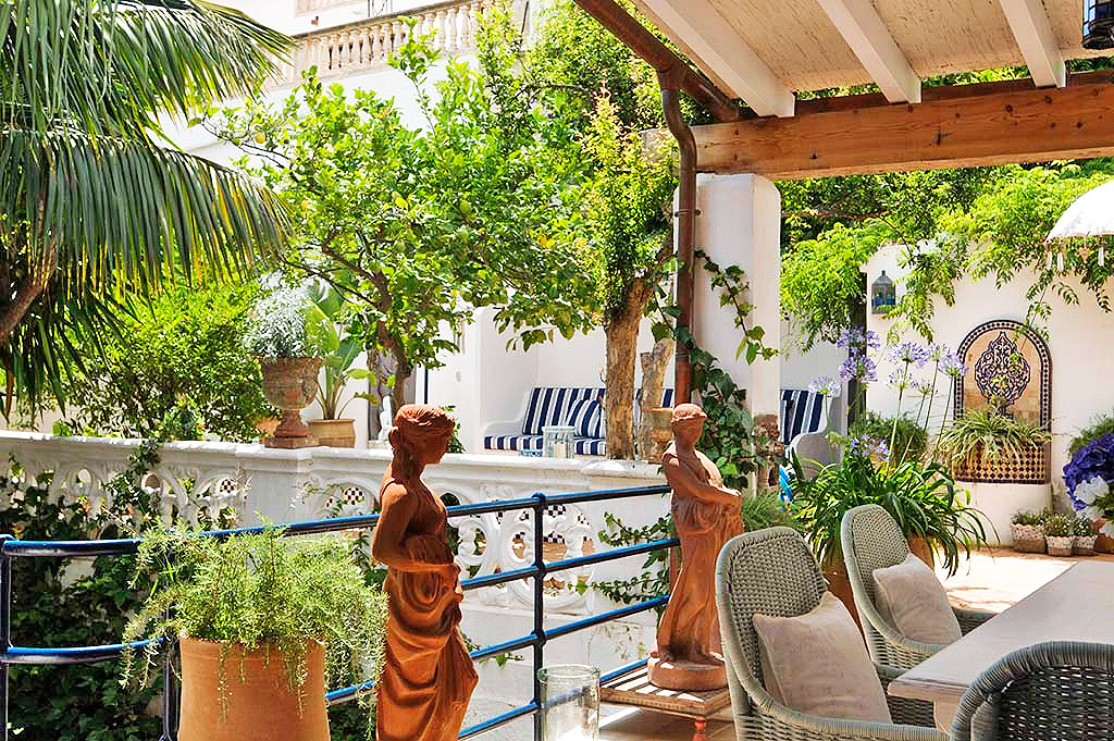Plats: Den söderläge villan ligger ovanför småbåtshamnen i Palma, på sluttningen av slottet kullen Castell Bellver i trendiga artist-villa distriktet „El Terreno“, långt från liv och rörelse i metropolen, men ändå tillräckligt nära för att nå alla intressanta platser mycket snabbt. Vare sig flygplatsen, snabbköpet, golfbanor, småbåtshamn, kaféer eller alla typer av restauranger, shoppingmil, nattliv eller strand, ingenting är mer än 10 minuter bort. Den fantastiska panoramautsikten över havet från övervåningen och bergen från de nedre våningarna är imponerande.