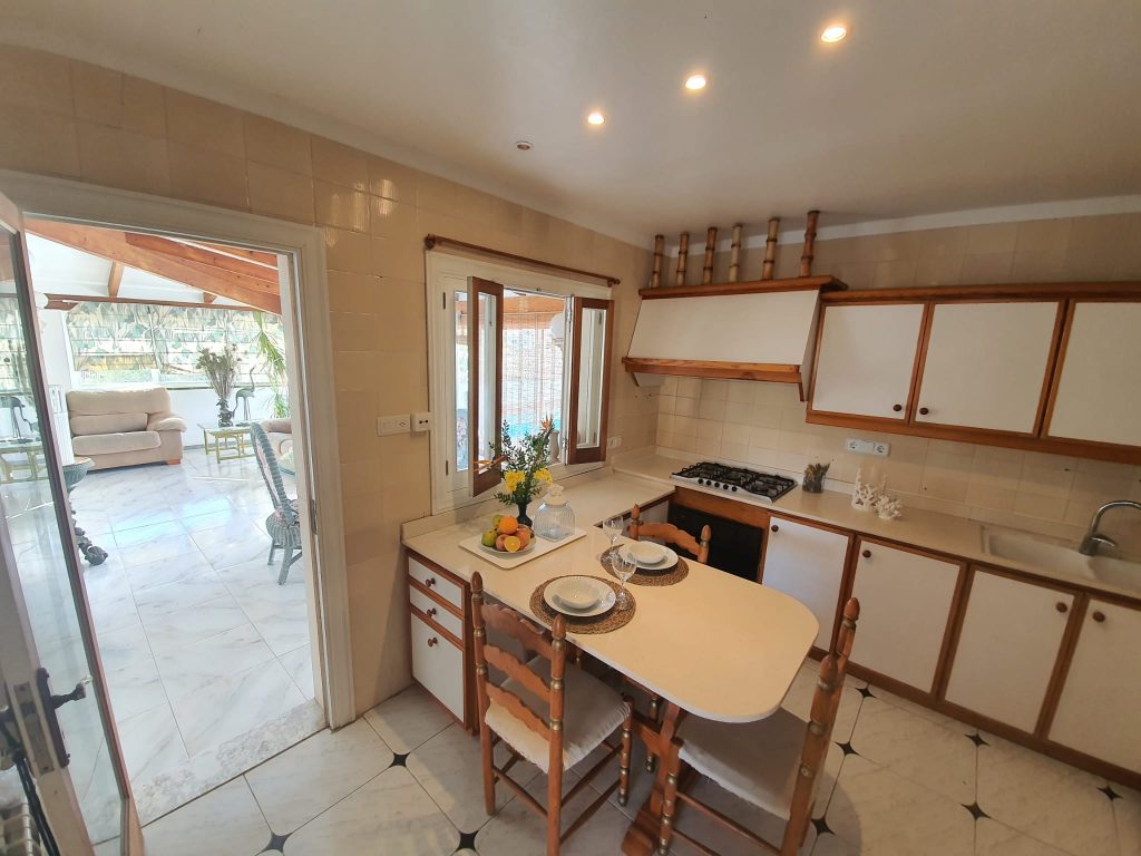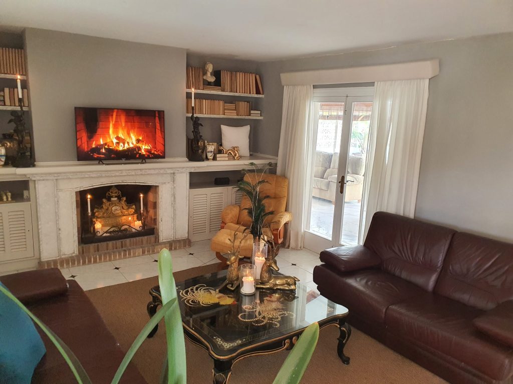 kök, vardagsrum-matsal med öppen spis, 2 sovrum, 2 badrum (1 ensuite), omklädningsrum, vinterträdgård