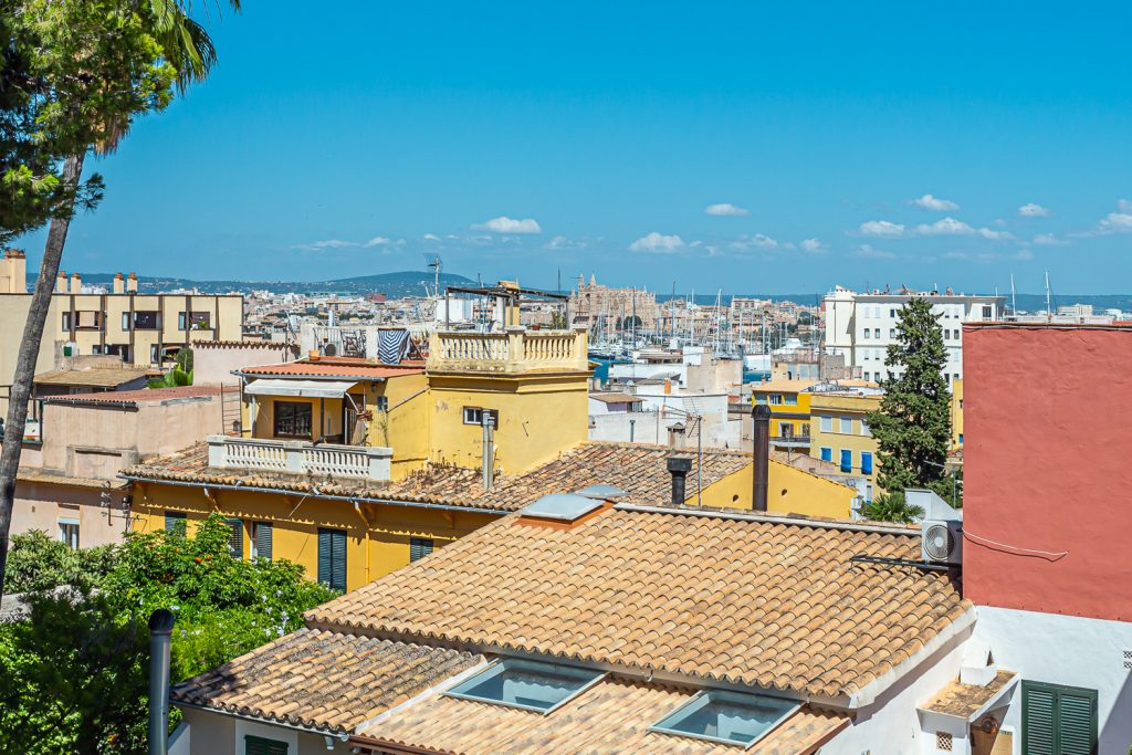 Denna mycket speciella fastighet har magnifik utsikt över Palma, stadssilhuetten med katedralen och hamnen och har nyligen totalrenoverats med högsta kvalitet och lyxiga material.